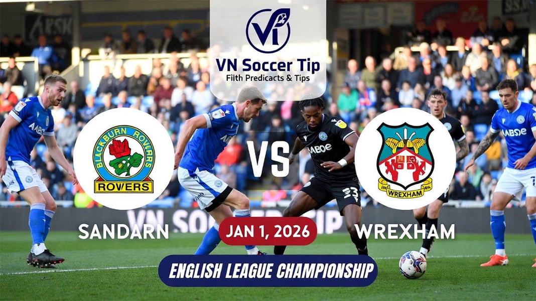 Trận Championship Anh giữa Blackburn Rovers và Wrexham diễn ra lúc 19:30 ngày 1/1/2026 (giờ Việt Nam) tại Ewood Park. Dự đoán Blackburn vs Wrexham hứa hẹn kịch tính với hai đội đang cạnh tranh vị trí giữa bảng. Đây là phân tích chuyên sâu từ nền tảng VN Soccer Tip, mang đến tip bong da chất lượng và soccertip đáng tin cậy. Bạn có thể theo dõi tỷ số trực tiếp tại bóng đá trực tiếp trên VN Soccer Tip.